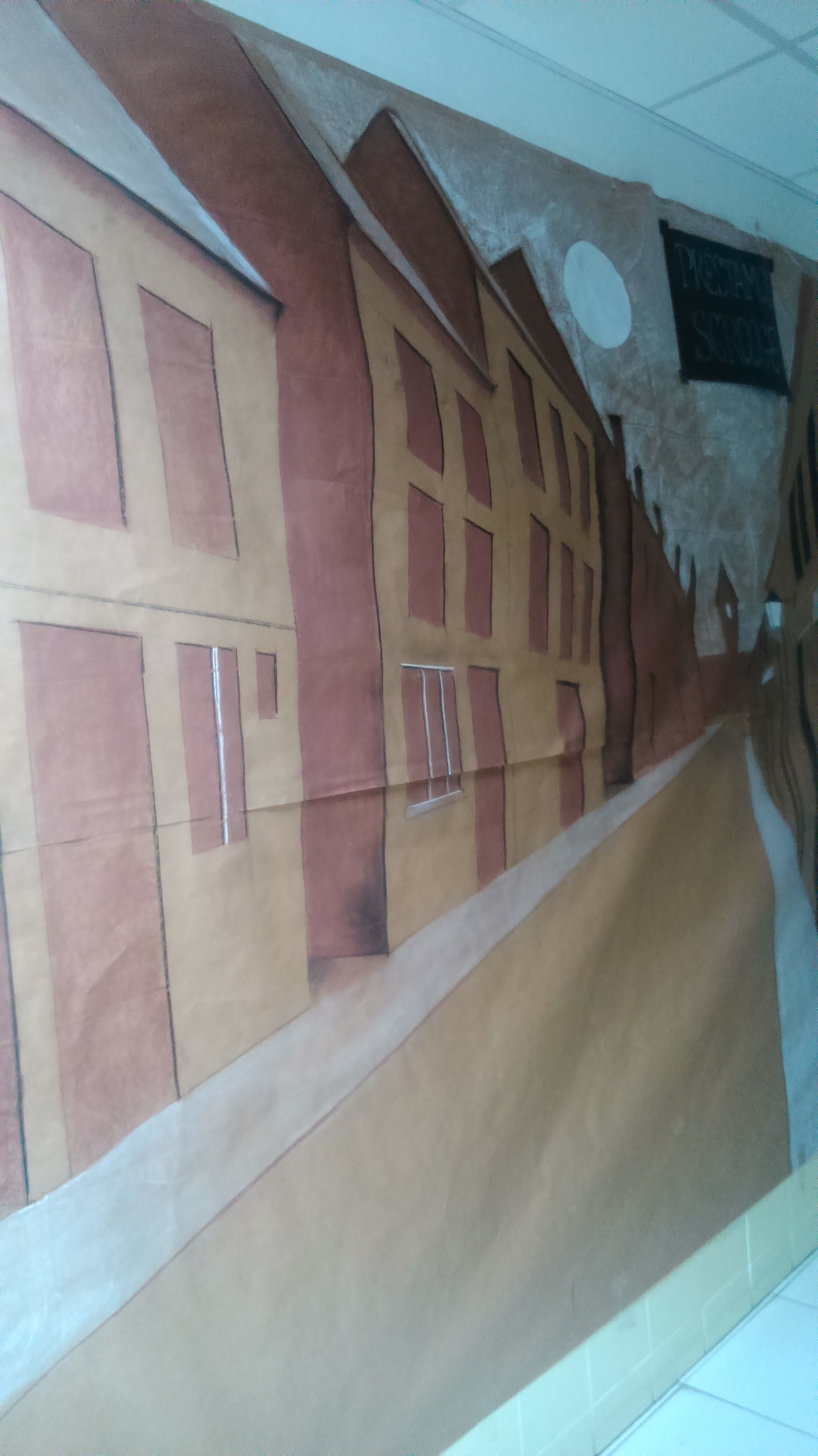 Y os mostramos el decorado que ha elaborado Milagros, nuestra profe de plástica en colaboración con el Departamento de Lengua, para el teatro de 4º del miércoles. La obra es «Cuento de Navidad».