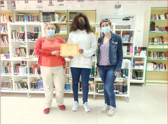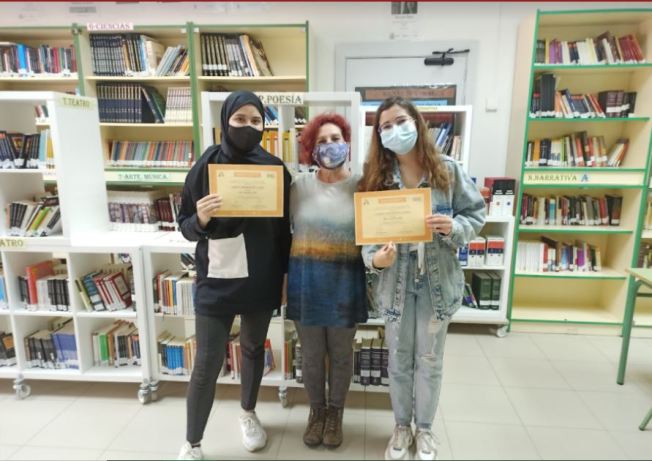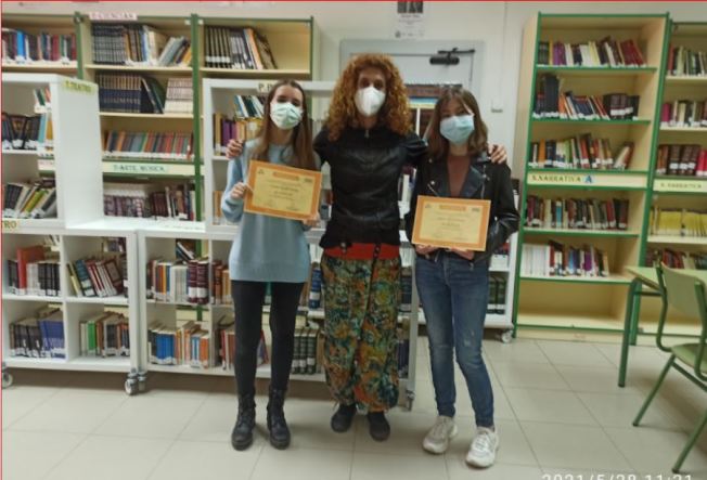 No ganaron, pero “La asociación de editores de Madrid” y la Consejería de Educación y Juventud de la CAM, les han otorgado un diploma de participación. El pasado viernes y hoy lunes les hicimos entrega de los mismos. Aquí posan estupendos junto con sus profesoras de lengua.