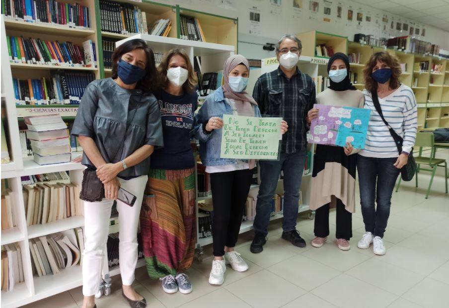 Ayer martes entregamos a las ganadoras su premio y diploma correspondiente, aquí las vemos posando con sus tutores junto con la Jefa de estudios y la Directora.