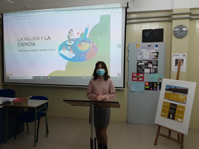 Con su trabajo, Nerea ha querido dar respuesta a por qué la presencia de las mujeres en los estudios relacionados con la tecnología es menor que la de los hombres. Ha recopilado datos, los ha analizado y, por último, ha expuesto los resultados obtenidos ante el tribunal formado por Olmar Arranz, profesora de Lengua, Cristina Mena, profesora de Biología y Juan Carlos Novo, profesor de Educación Física.