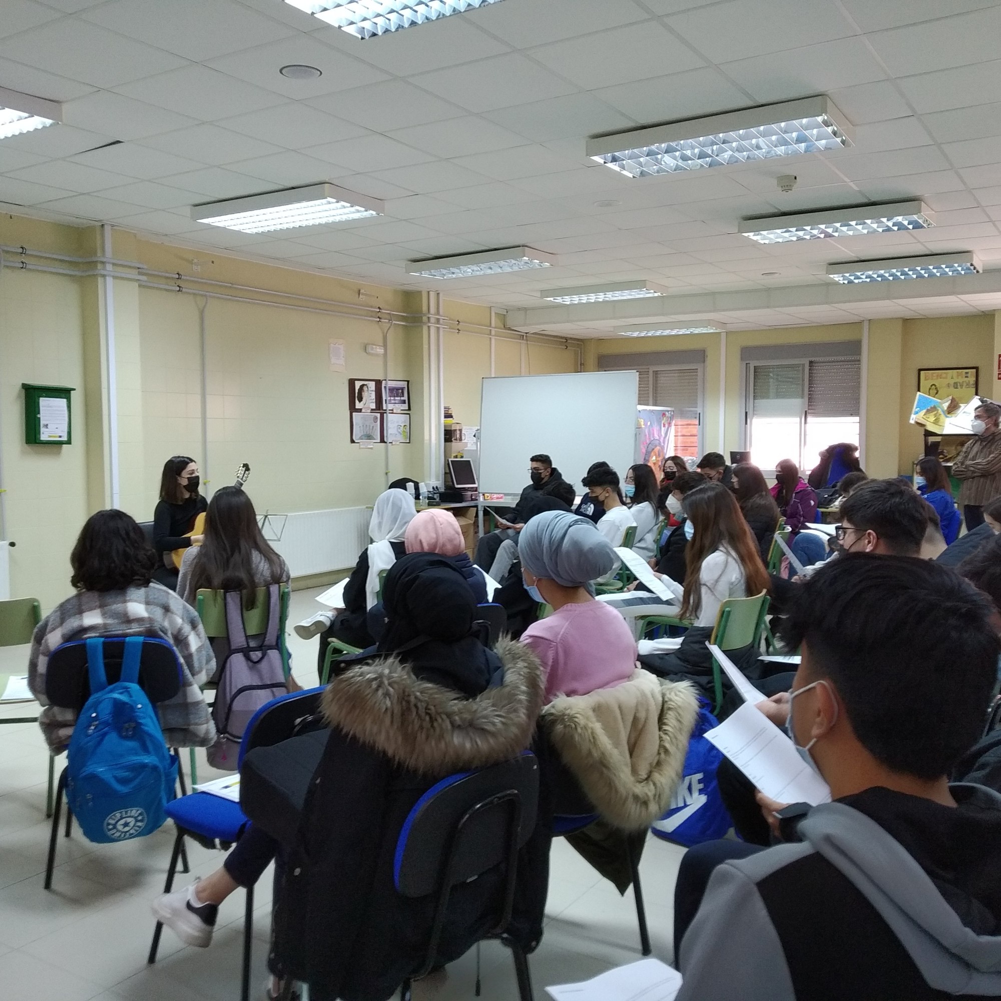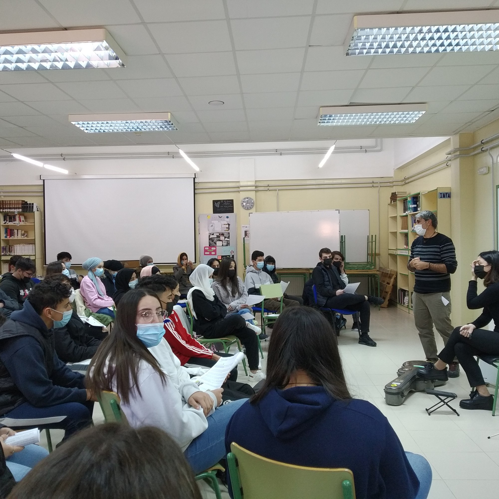 El pasado miércoles, un grupo de alumnos de 4º y 2º PMAR ponía el broche final al proyecto «En movimiento» que les ha permitido investigar sobre las migraciones, desplazamientos forzosos y todas sus consecuencias sociales y emocionales, las experiencias personales compartidas… Este trabajo ha sido posible gracias a la profesora Miriam Martínez. En breve, publicaremos en este blog más información sobre dicho proyecto.