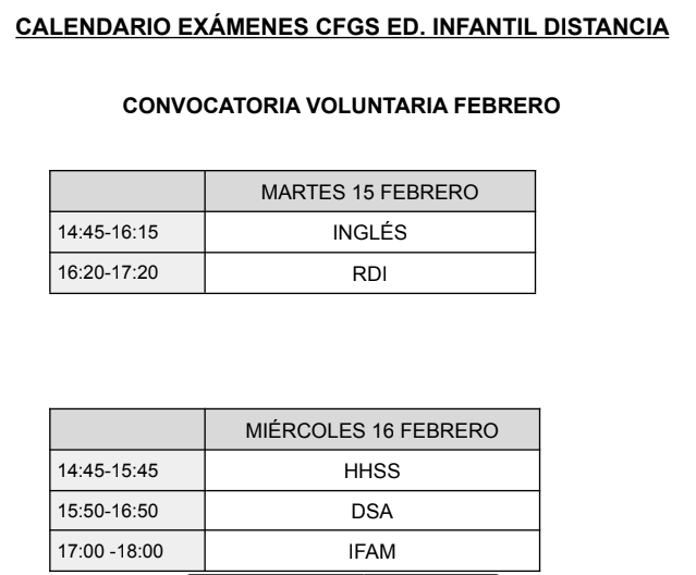 Aprovechamos también para publicar los exámenes voluntarios de febrero del Grado Superior.
