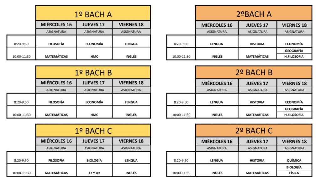 Exámenes de Bach – 2ª Evaluación 19Ene 2022Añadir un comentario Adjuntamos el calendario de exámenes de 2ª evaluación de 1º y 2º de Bachillerato, para que todos podáis organizar mejor vuestro estudio. ¡Ánimo! Me gusta Cargando... Relacionado
