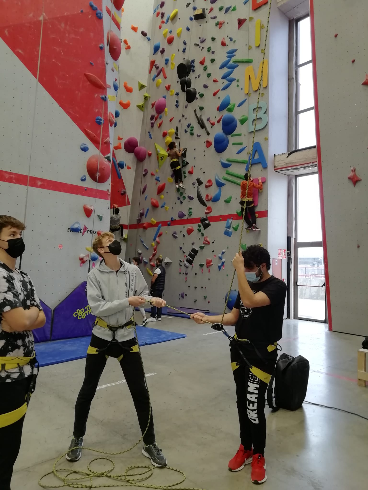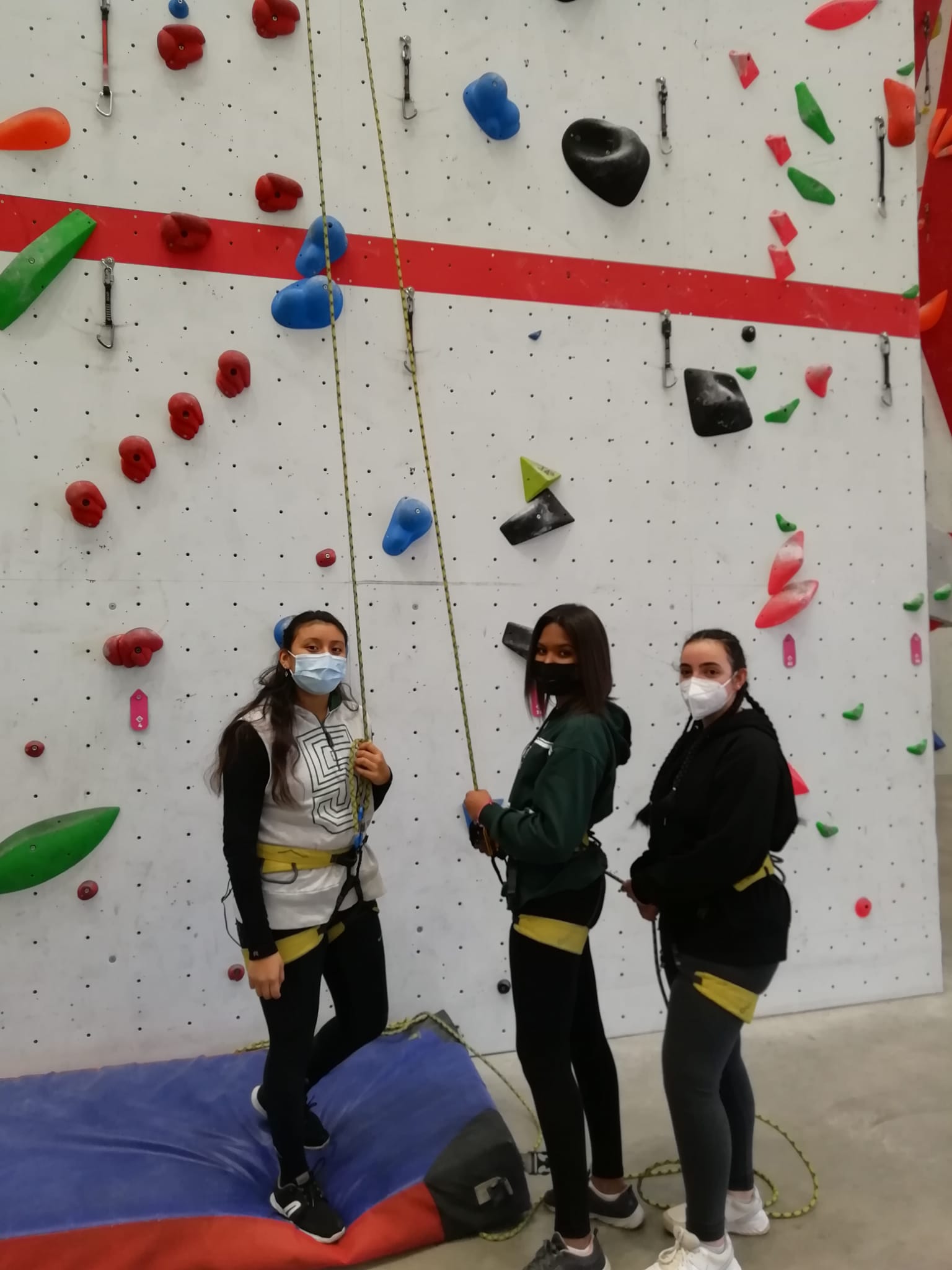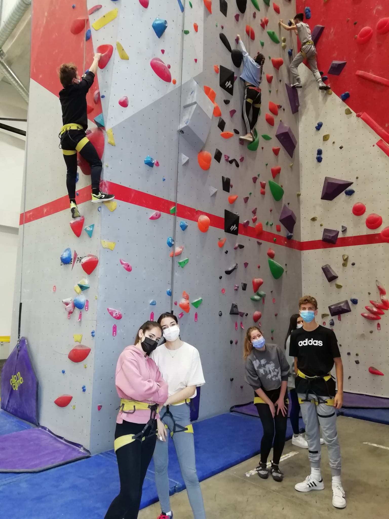 Se lo han pasado genial haciendo ejercicio y aprendiendo técnicas de escalada en paredes de 12 metros de altura. Los 3 profes que les hemos acompañado también hemos hecho nuestros pinitos.