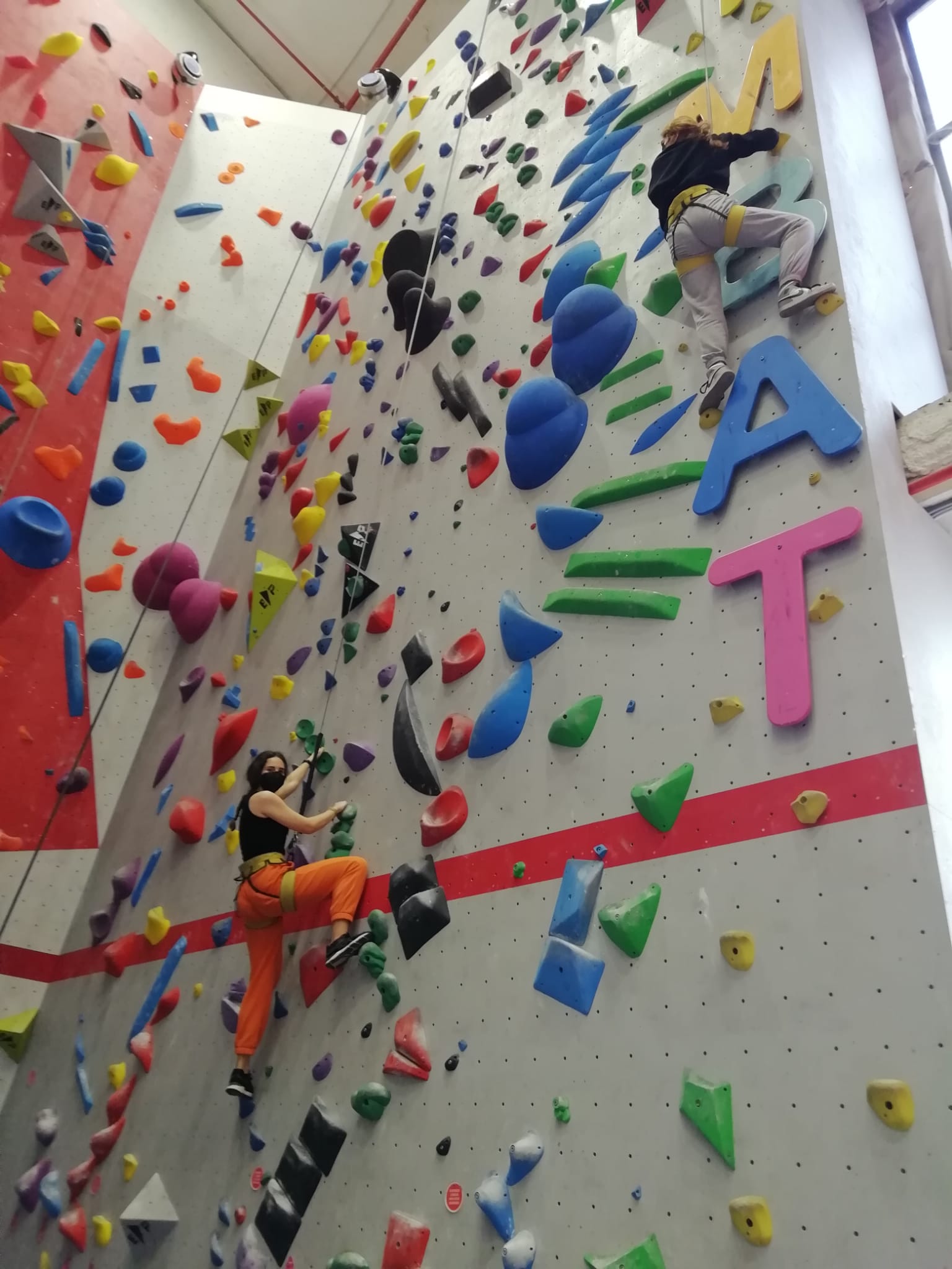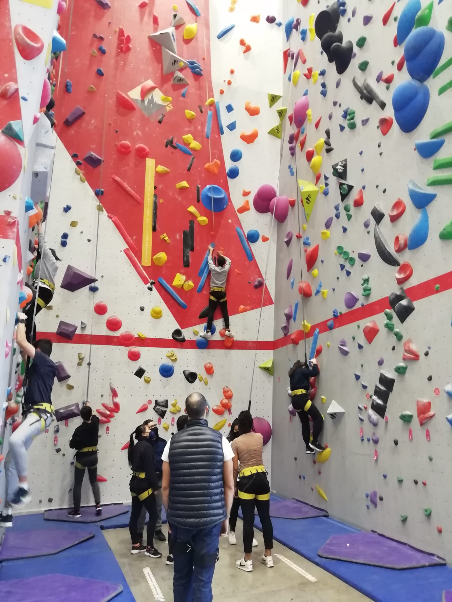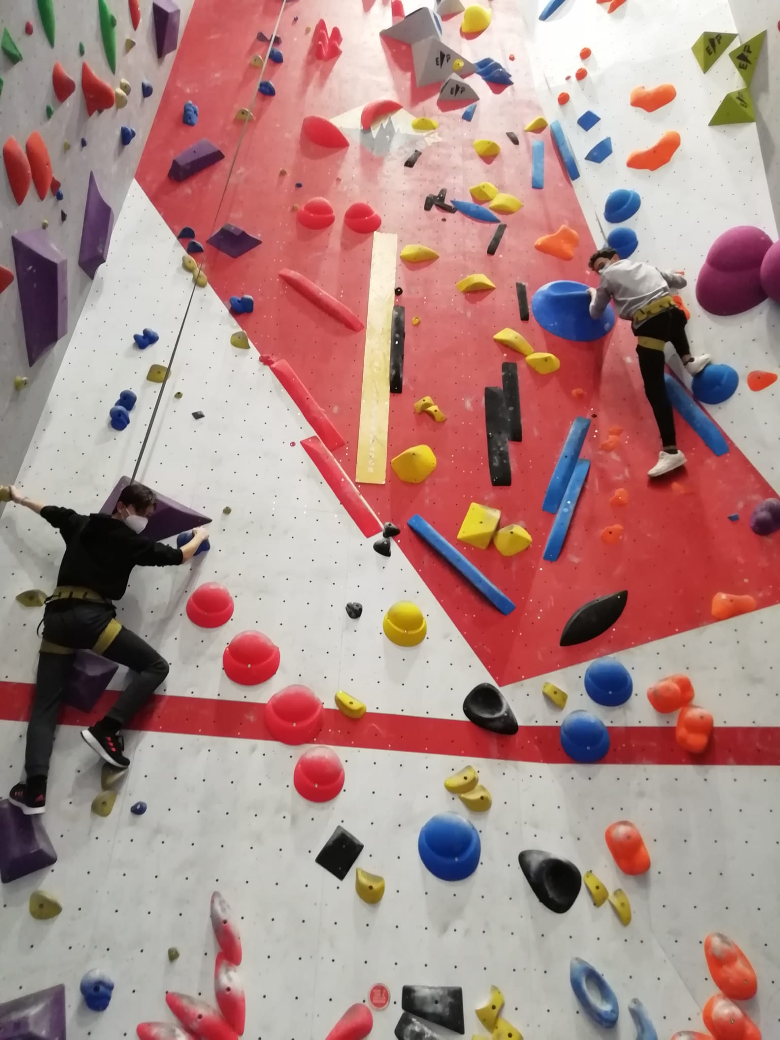 Se lo han pasado genial haciendo ejercicio y aprendiendo técnicas de escalada en paredes de 12 metros de altura. Los 3 profes que les hemos acompañado también hemos hecho nuestros pinitos.