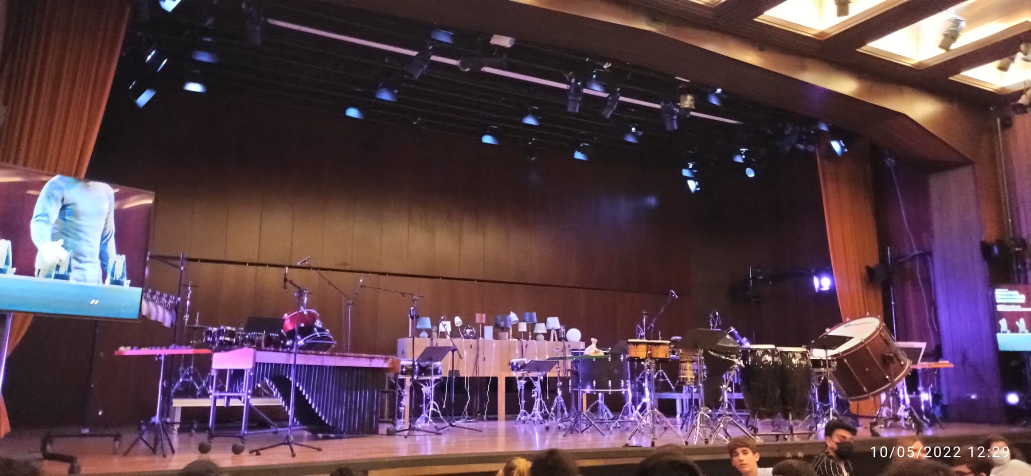Nos han ofrecido una variedad de obras de percusión compuestas en los últimos 30 años, de artistas como P. Glass, A. Esperet o M. Miki entre otros. Nos han sorprendido con el sonido de la marimba, los taikos… y muchos otros instrumentos de percusión que nos han ido mostrando.