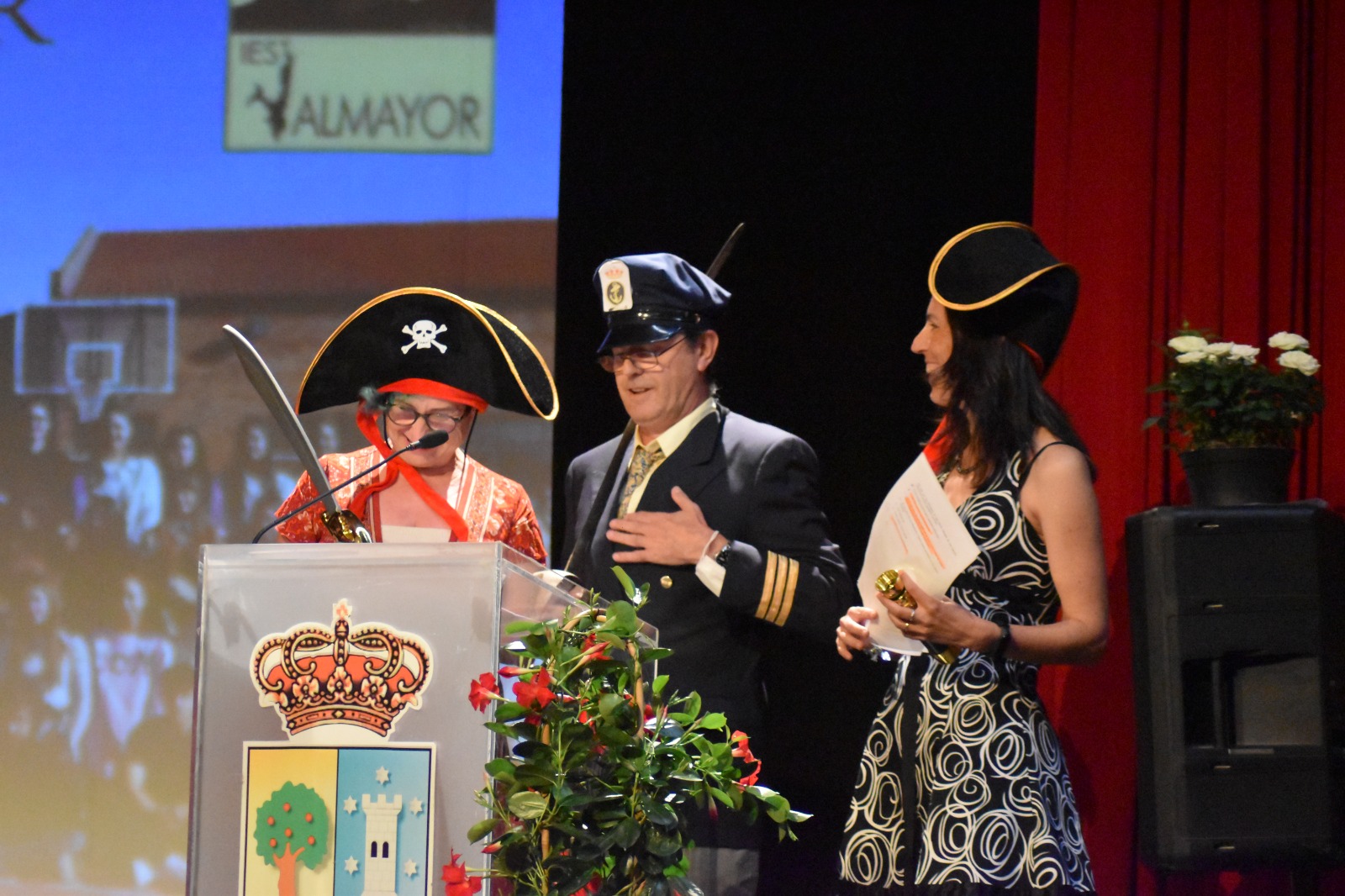 Después, los tutores de 2º de Bachillerato. Hugo, Sara y Olmar, nos sorprendieron con un guion genial en el que relacionaban el paso de nuestros alumnos por el insti, con la travesía de Juan Sebastián Elcano. ¡Irrepetible!