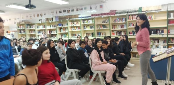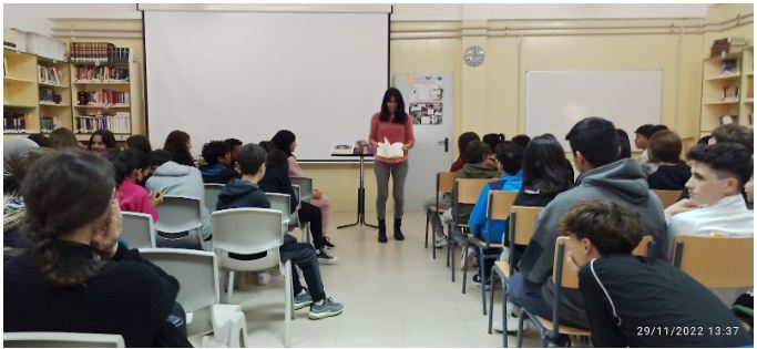 El martes, dulce día el martes, los alumnos de 2º de la ESO sentipensaron al ritmo de los versos de Raquel Lanseros; su voz los acompañó hasta los lugares más inauditos, desde Macondo llegaron al nogal que proyecta sus ramas sobre la casa de los abuelos de Raquel y al que se encaramaba para escribir de niña sus versos; También degustaron manjares corrientes transformados en ambrosía como esa redonda rosa de agua de Neruda.