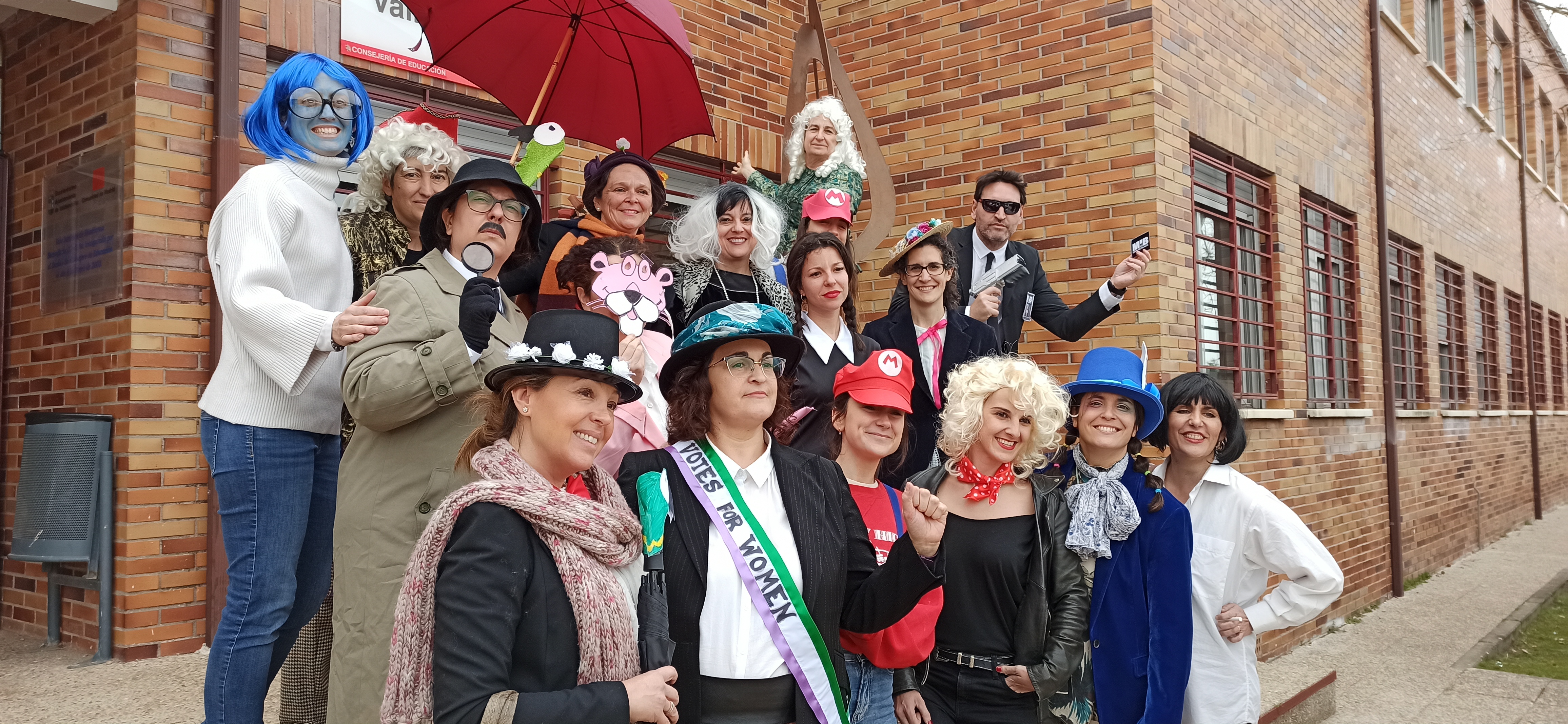 En la sala de profesores del Valmayor nos hemos encontrado esta mañana con … una.. dos y hasta tres Mary Poppins, que han tenido a bien cambiar la tiza por el paraguas, mientras en otras clases algunas de las primeras sufragistas defendían sus derechos con la palabra como arma.