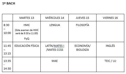 Os recordamos la convocatoria de exámenes extraordinaria en 1º y 2º de Bach y 1º y 2º de FP Presencial, que tendrán lugar la semana próxima del martes 13 al viernes 16.