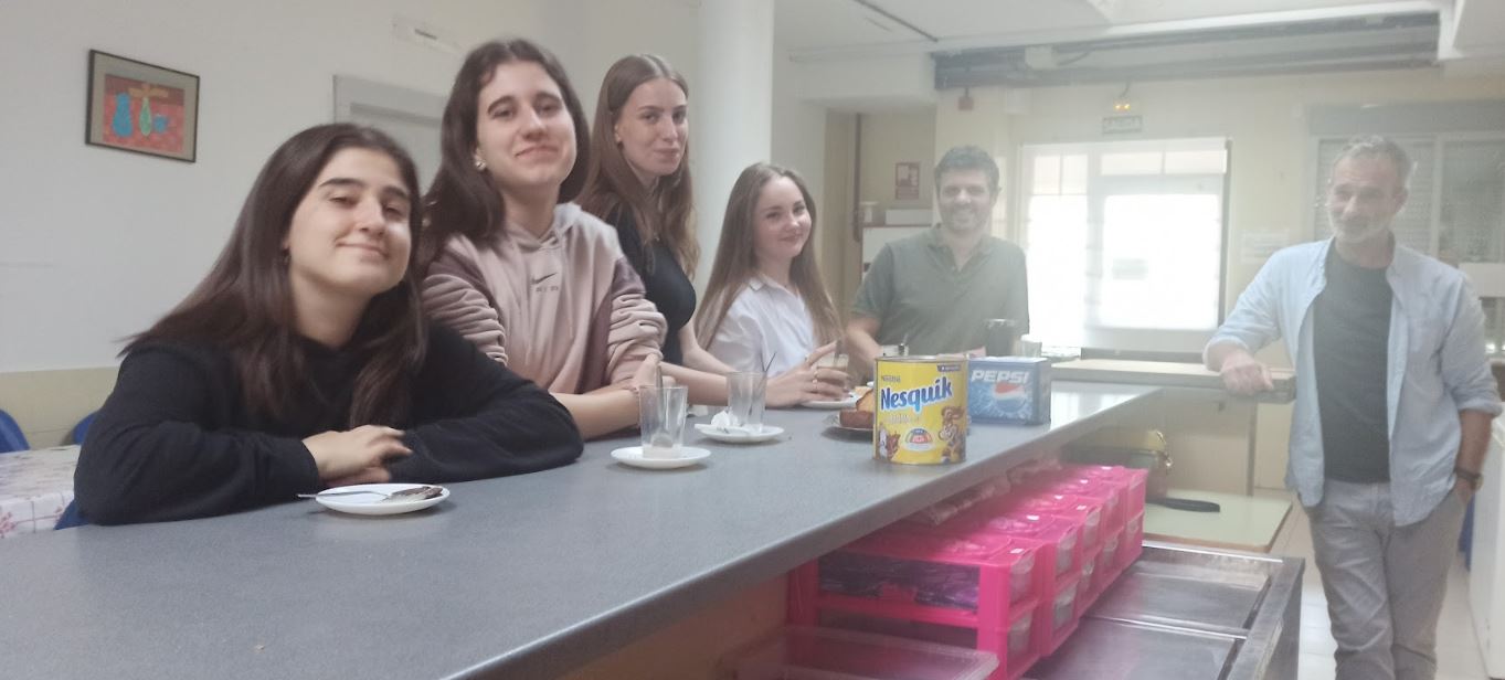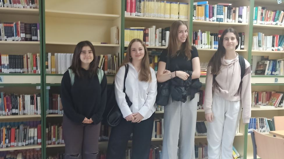 Luego, acompañadas de Andrea, Amaia y una servidora, hemos paseado por el centro para que conociesen las instalaciones más emblemáticas como nuestra biblioteca Macondo, el gimnasio, el aula del futuro, donde como vemos en el vídeo una compañera les explica el trabajo que están realizando en este momento, o algunas clases particulares donde los alumnos de bachillerato preparaban la visita al Museo del Prado a la que ellas también acudirán.