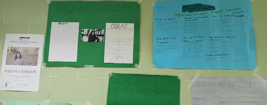 Luego pidió a los alumnos, que como siempre habían elaborado los murales donde recogen su biografía y producción lírica, que le propusieran algún tema para defenderlo con sus versos que leyó al auditorio. Así disfrutamos de los poemas de Lanseros vinculados con la vida y la memoria.
