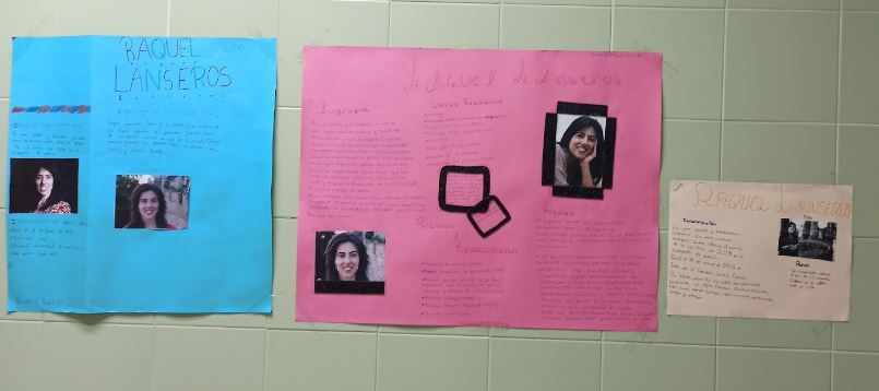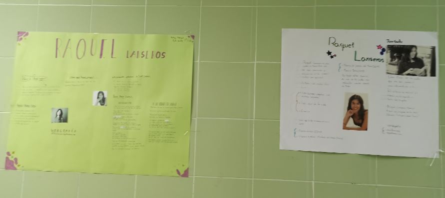 Así presentaban nuestras alumnas Lorea Sotillo y Ruth Montero a Raquel Lanseros que el pasado viernes con Erató, la musa de la poesía, estuvo en Macondo, nuestra biblioteca.