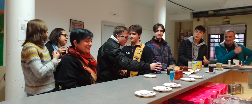 Con un suculento desayuno con el bollo tradicional de “Almudena” que nos ha permitido hablar de sus primeras impresiones, la estructura de su instituto en Módena y la amistad creada entre ellos.