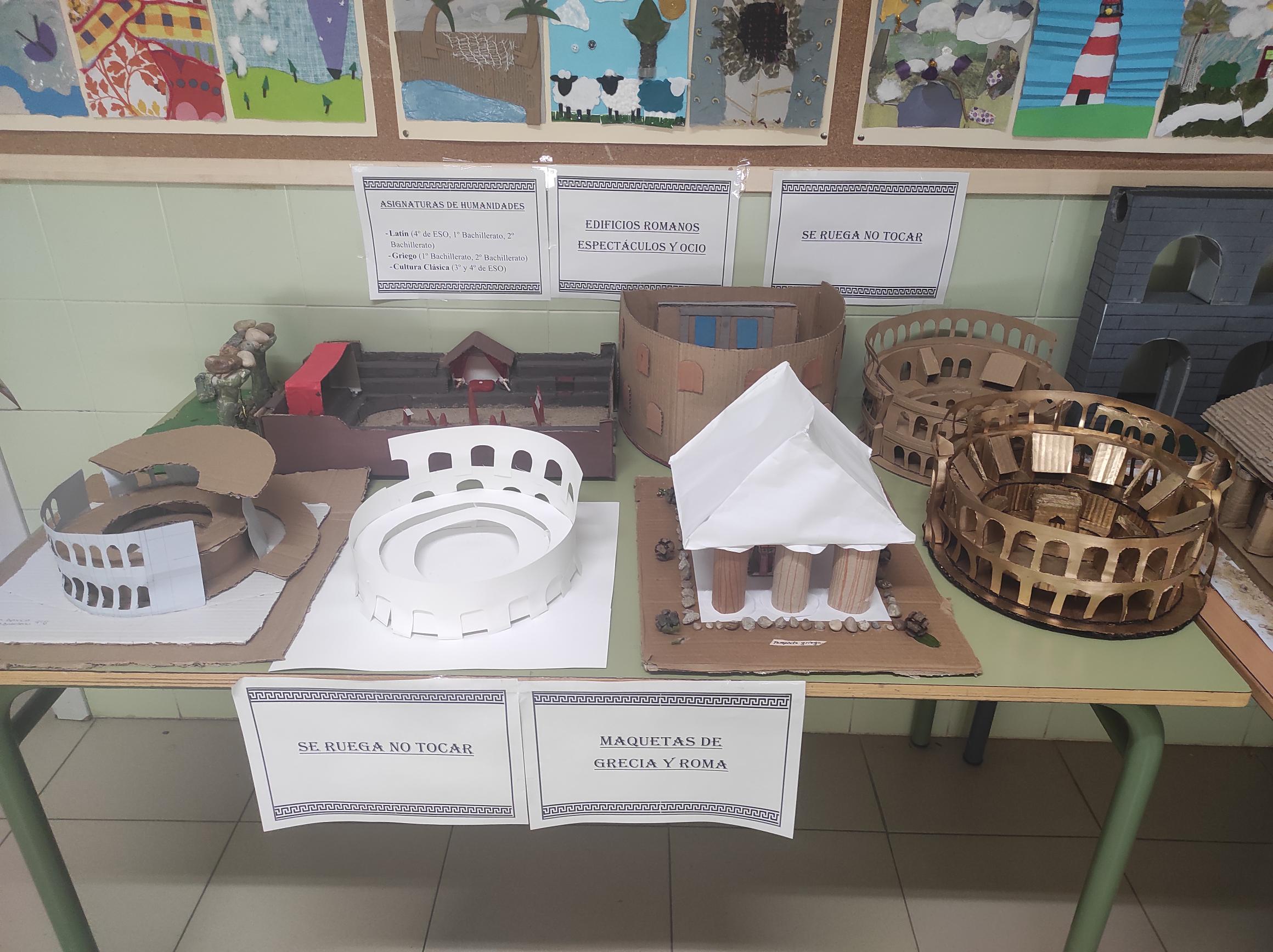 Los alumnos de Latín de 4º de ESO, 1º de Bachillerato y 2º de Bachillerato han realizado unas maquetas de los edificios públicos más representativos dedicados al ocio y a los espectáculos. Las maquetas quedarán expuestas durante dos semanas para que los compañeros puedan contemplarlas.