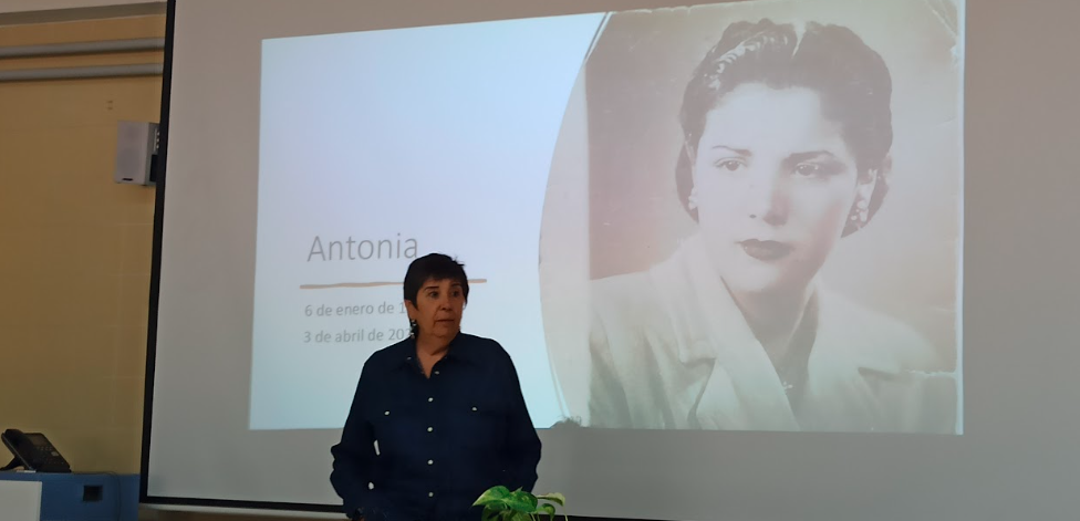 Los alumnos le entregaron el trabajo que sobre la novela de Antonia habían realizado: unas cartas ficticias a la protagonista del relato, un monopoly donde figuraban las calles que aparecen en la novela, una presentación hecha con realidad virtual y un tráiler de lo que sería la Novela llevada al cine, entre otras cosas.