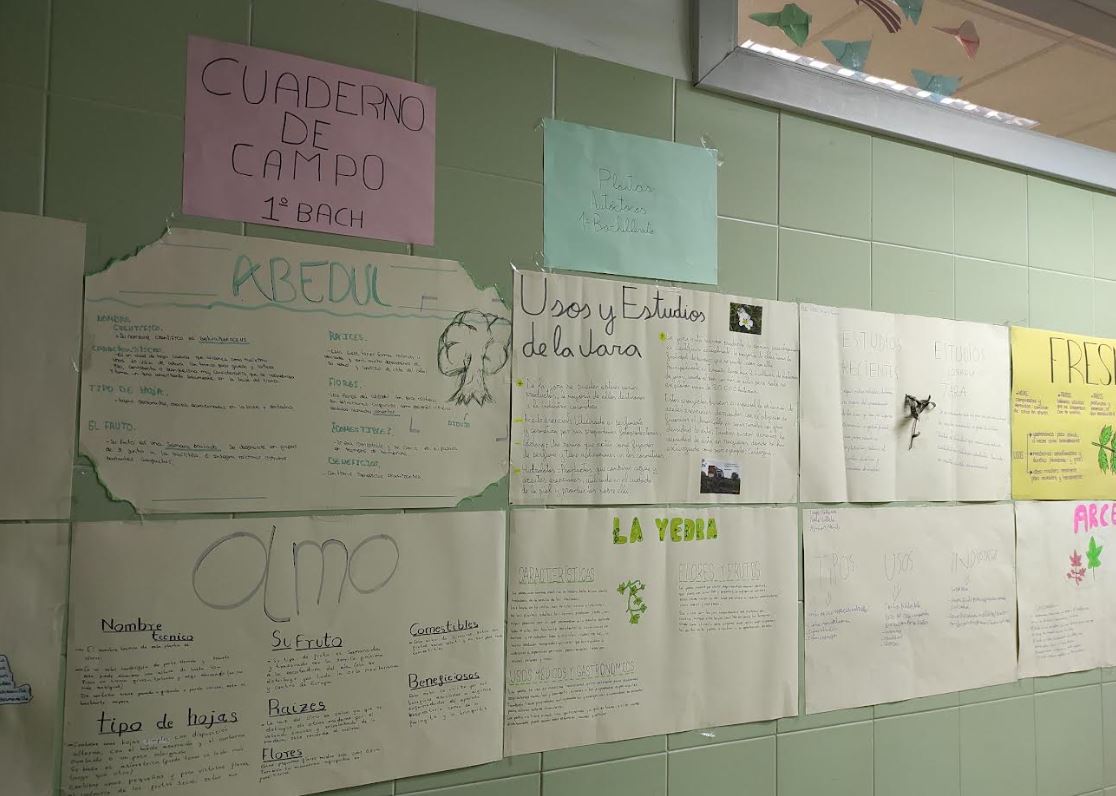 Los alumnos de 1º de Bachillerato ha realizado, en la asignatura de Atención Educativa, un Cuaderno de campo que ha quedado expuesto en los pasillos de la 1ª planta del Centro por medio de una serie de cartulinas.