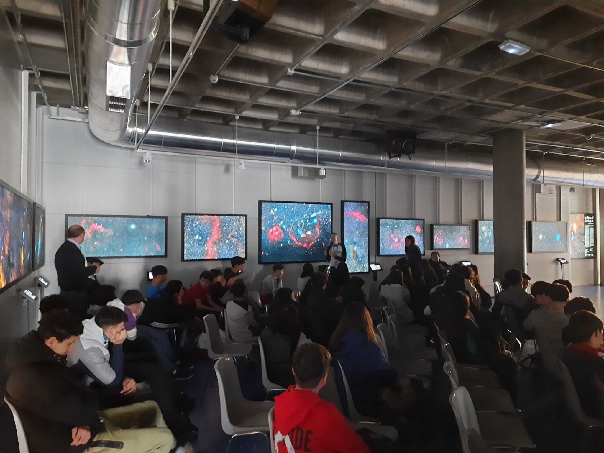 Para finalizar los monitores de astronomía organizaron un KaHoot ¡en el que dos de nuestros alumnos quedaron en el podio! Por último, nos dividimos en dos grupos para visitar la zona de Audiovisuales y la exposición: “Artemisa: la magia de la Luna”.
