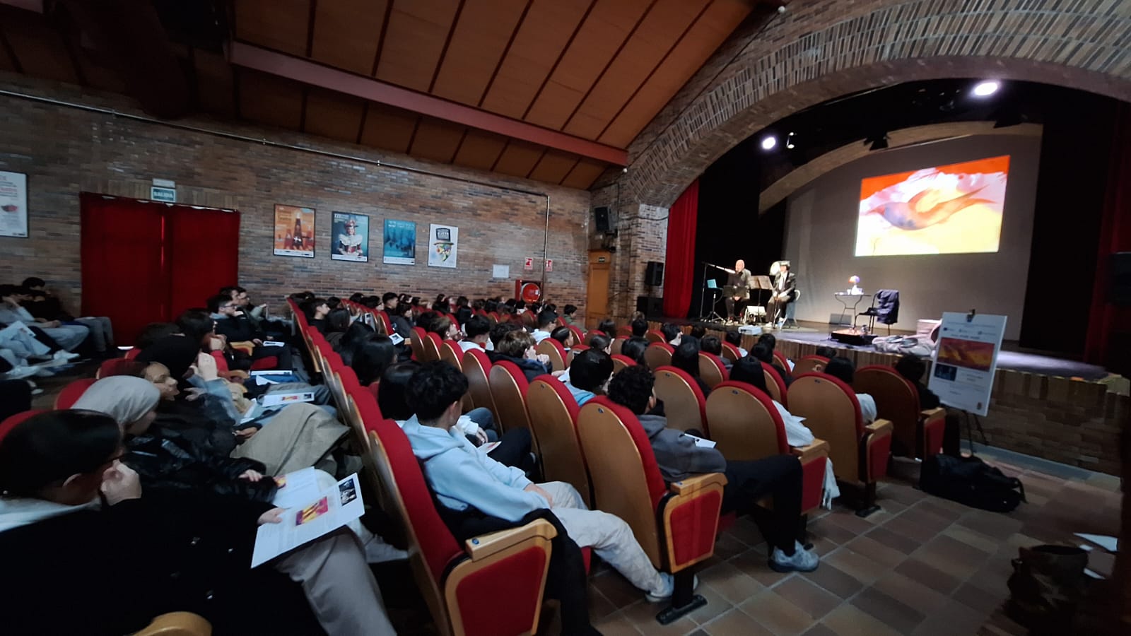 El pasado jueves los alumnos de Bachillerato y de 2º de CFGS en Educación Infantil disfrutaron de un extraordinario concierto organizado por los Departamentos de Música y Lengua castellana y Literatura.