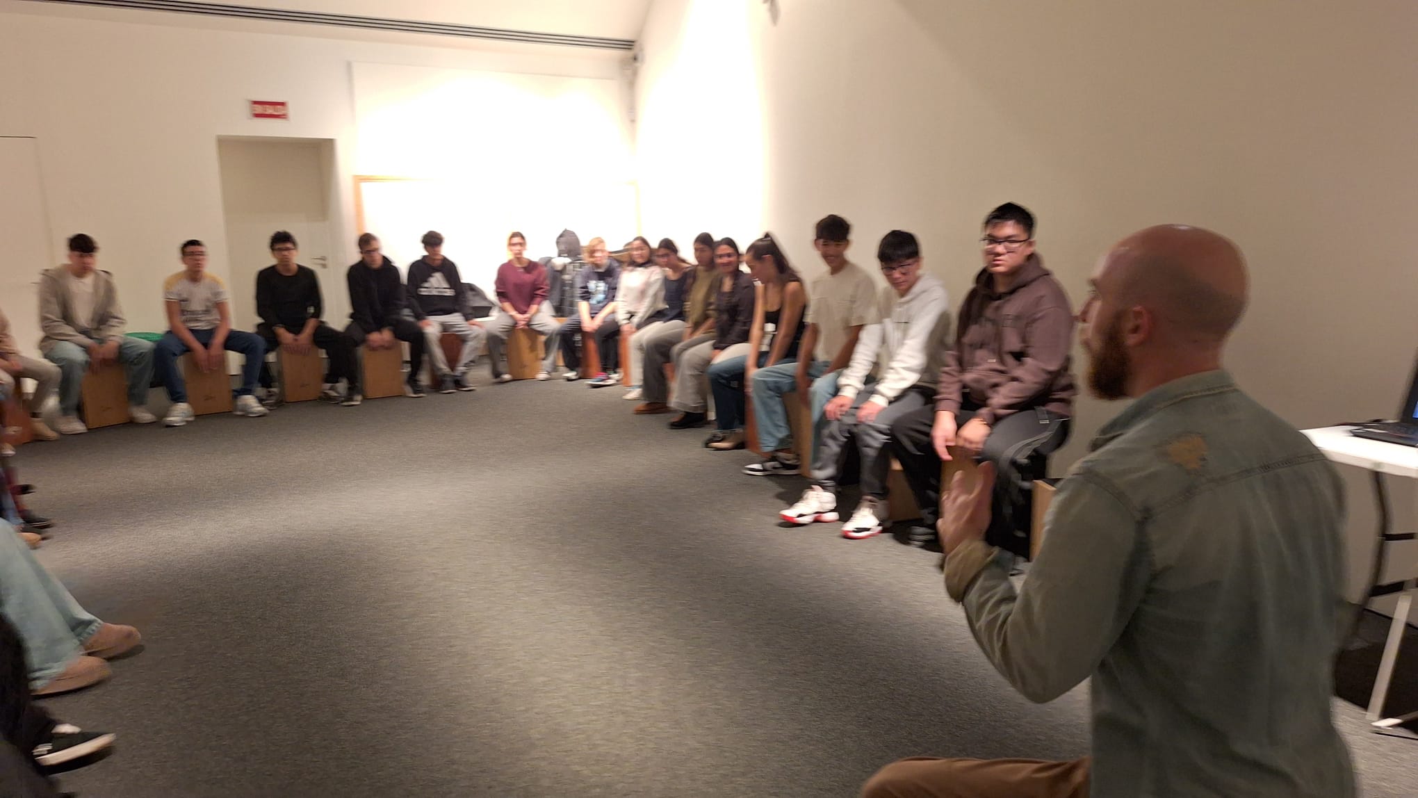 A través de las alegrías, un palo del flamenco que incita a la diversión, nuestros alumnos han experimentado con los doce tiempos del compás flamenco y sus ritmos a través de la percusión corporal y la prosodia, ritmos que han trasladado al cajón fundamentalmente.