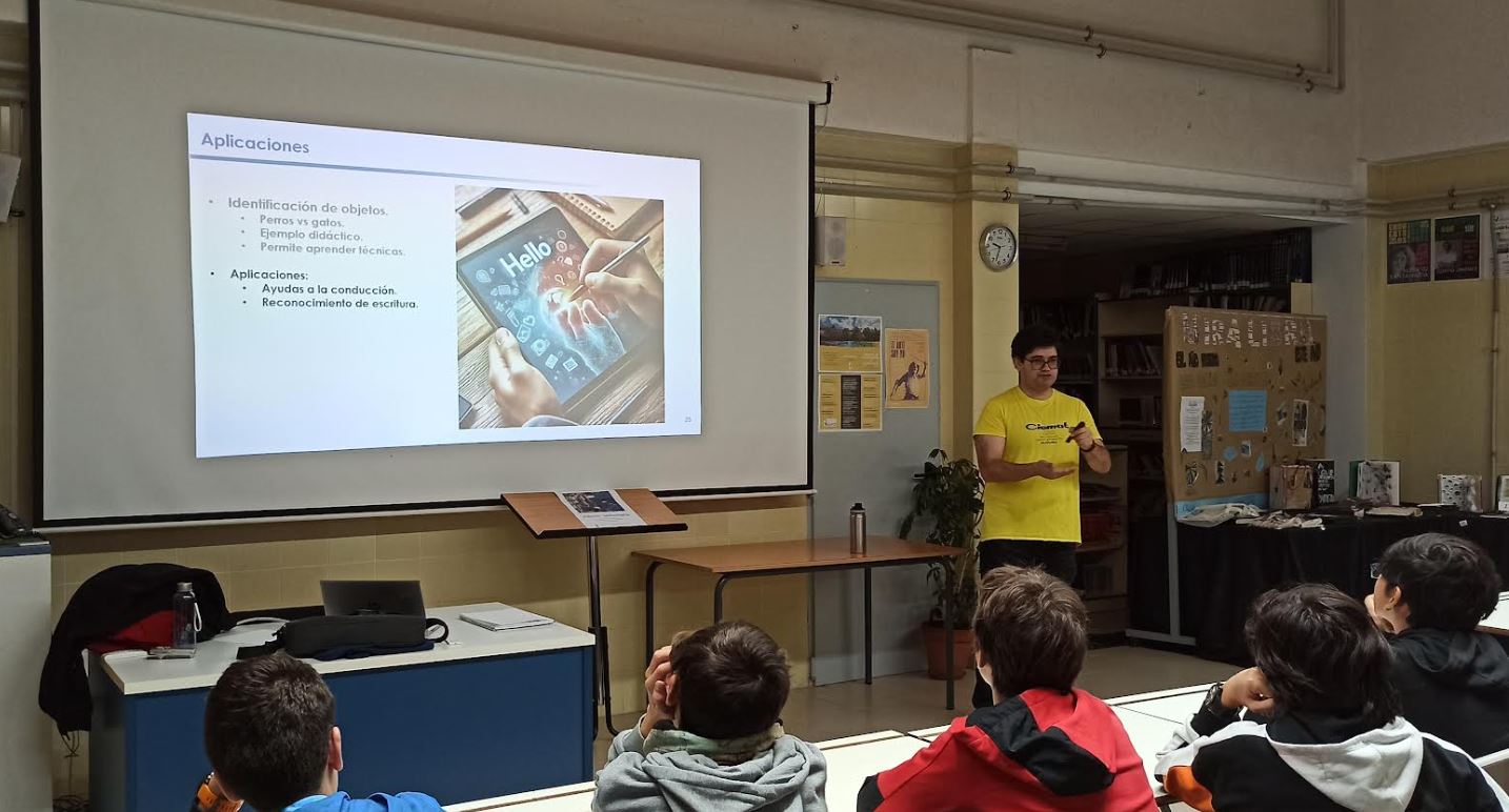 En su charla, Iñaki nos sumergió de manera cercana, amena y sencilla, al mundo de la inteligencia artificial aplicada a los rayos cósmicos, campo de su tesis doctoral que une la tecnología, la física y las matemáticas.
