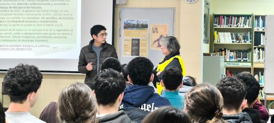 Pero este curso, también hemos asistido a una conferencia ofrecida por Elmer, refugiado Nicaragüense, que les ha aportado una visión realista y reciente, de las situación de su país. La iniciativa parte del grupo de Amnistía Internacional Sierra Oeste, con el que colaboramos desde hace más de un lustro gracias a su responsable Carmen Cuesta.