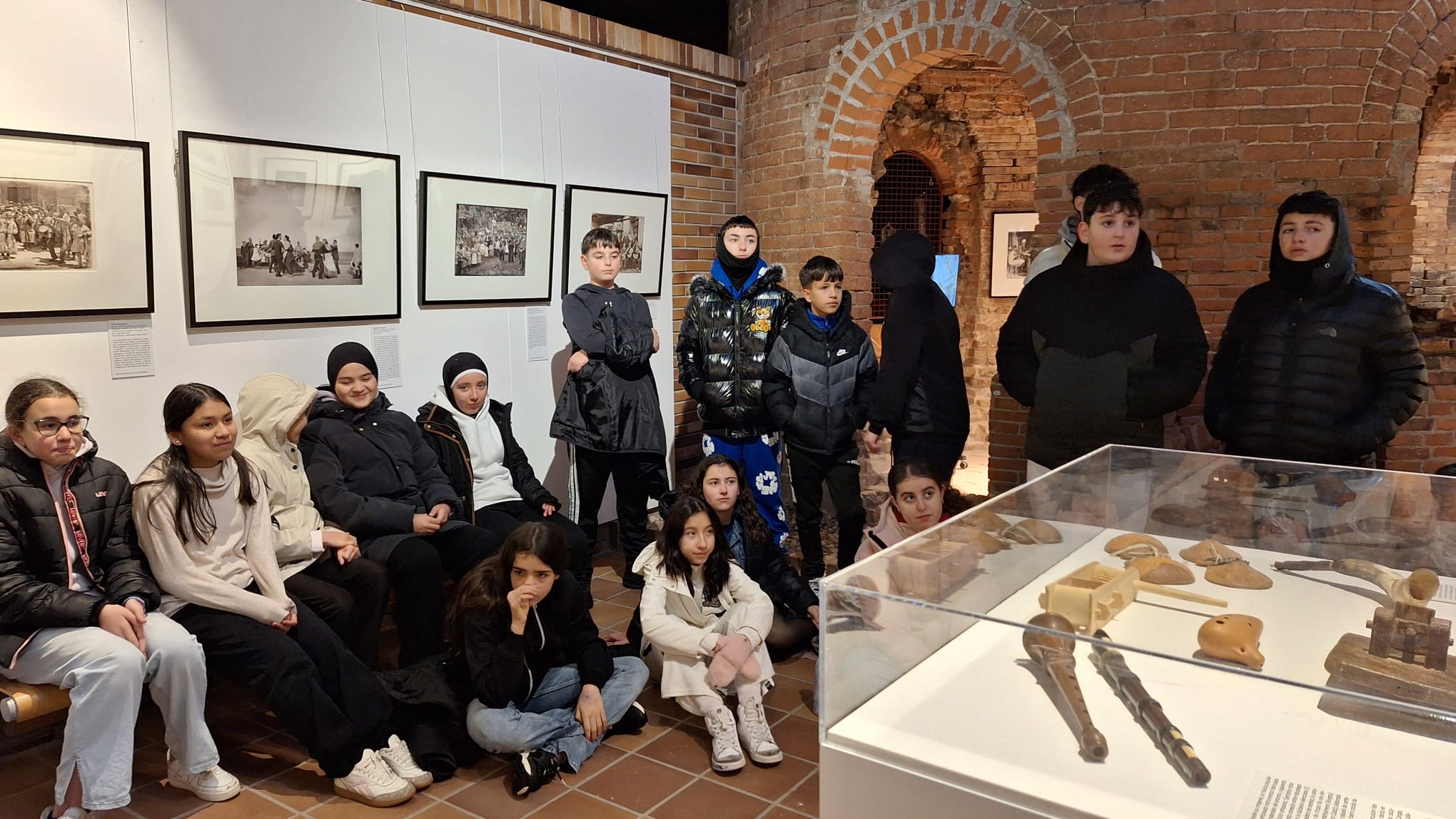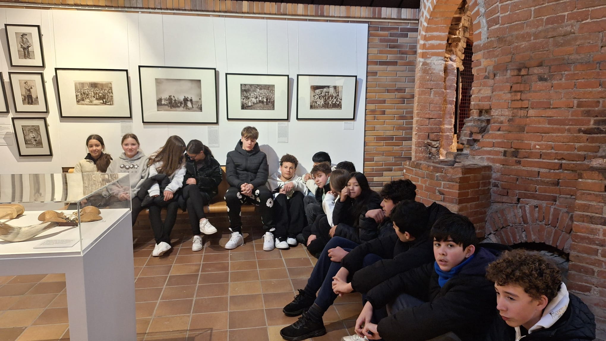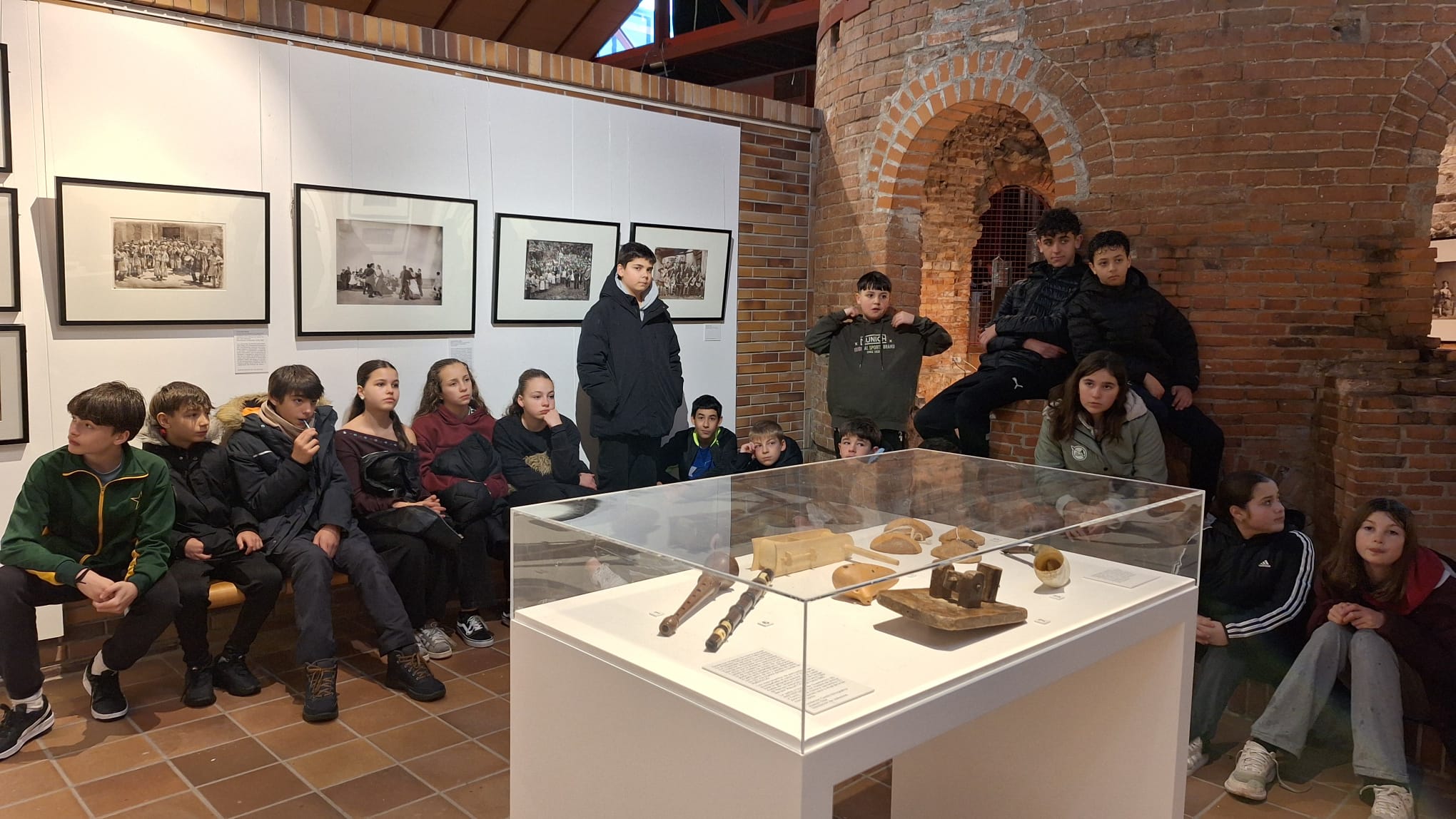 El recorrido se completa con una colección de instrumentos tradicionales cedidos por la Fundación Joaquín Díaz, institución de referencia en la conservación del patrimonio musical y etnográfico. Guitarras, castañuelas, panderos, rabeles y otros instrumentos han permitido a los estudiantes comprender cómo sonaban las melodías que acompañaban fiestas, trabajos y rituales de antaño. Además, la presencia de un traje típico de Valdemorillo, ha añadido un toque local que ha conectado la exposición con la identidad del municipio. Y, en el caso de 1º ESO C, María, especialista en el rondón que nos explicó cómo se baila…¡genial!