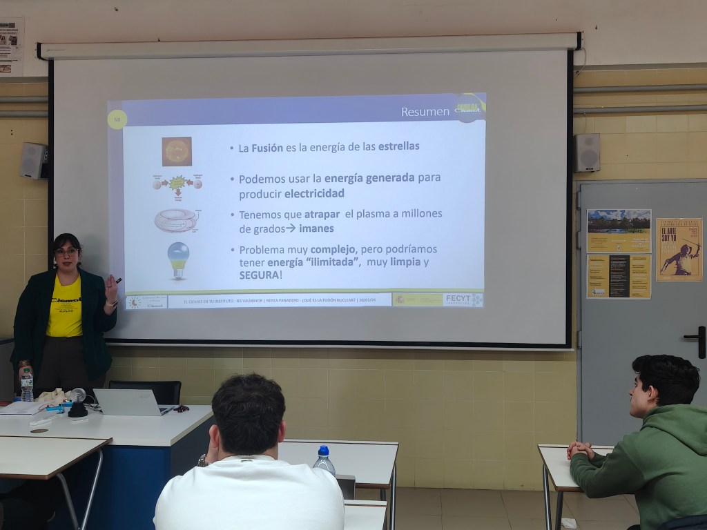 El alumnado de Ciencias de Bachillerato asistió a la conferencia impartida por Nerea Panadero del CIEMAT: ¿Qué es la fusión nuclear? Creando estrellas en la Tierra.