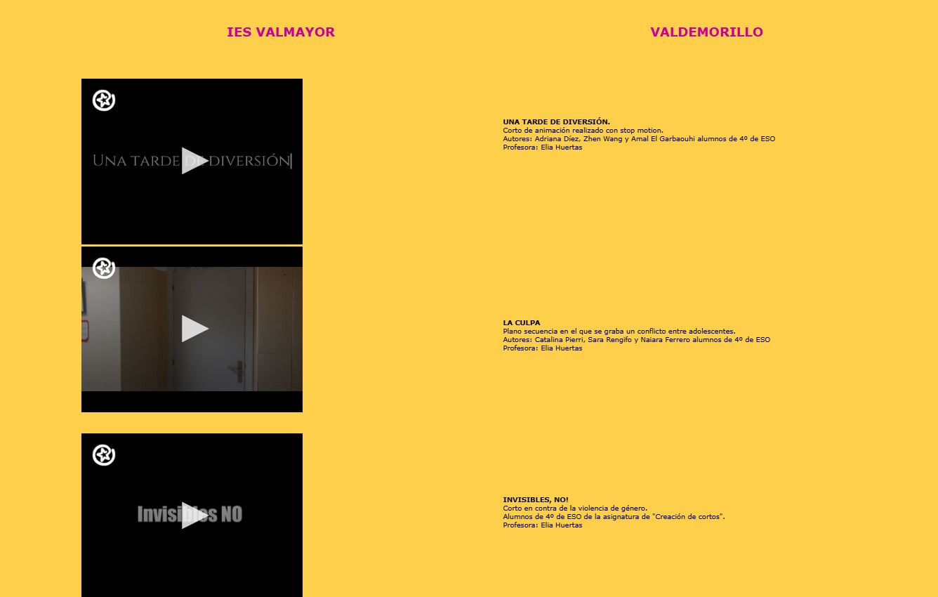 Un año más he tenido la oportunidad de participar con mis alumnos en el Festival Muvies (Muestra de Vídeos Escolares de la Comunidad de Madrid), una cita que siempre nos llena de ilusión. En esta edición hemos presentado tres trabajos: “Una tarde de diversión”, “Invisibles NO” y “La culpa”.