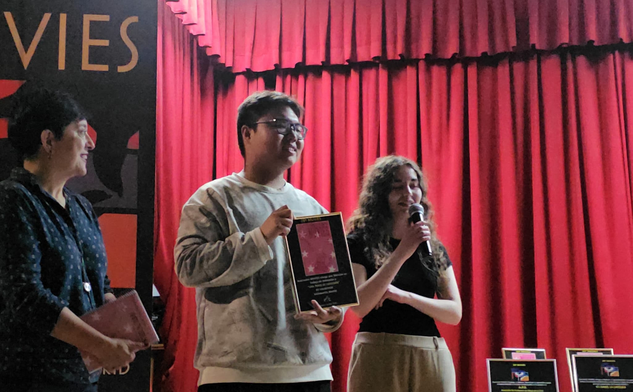 El pasado viernes acudí al IES Isabel La Católica al acto de clausura para recoger la mención junto a Zhen Wang y Adriana Díez, autores del corto premiado junto a Amal El Garbhaoui.