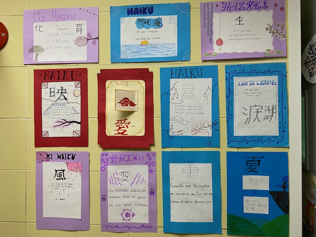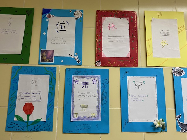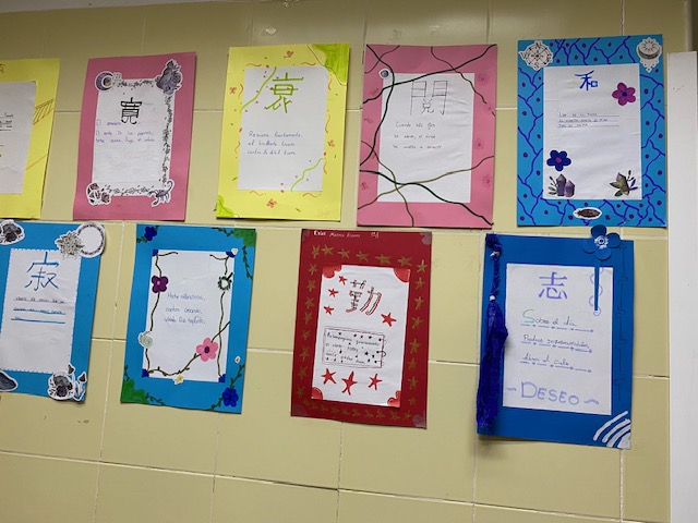 Los alumnos de 1º ESO han capturado instantes de emoción, pensamiento, deseo o memoria, encontrando una forma de expresión adecuada para ello en la tradición poética japonesa. Octavio Paz definió el haiku como «suspensión del ánimo» o “instante de la exclamación”. Hemos desarrollado un taller de poesía en el que hemos jugado, por una parte, con las características que definen el haiku: brevedad, antítesis, elementos de la naturaleza… y, por otra, con el rigor de la técnica del análisis sintáctico inverso. El resultado es esta exposición de haikus auténticos y sugerentes, kanjis incluidos, que podéis visitar en la Galería Pasillo Primeros.