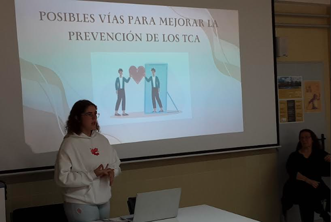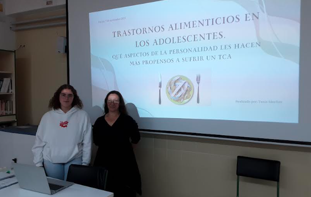 La exposición del trabajo de investigación de Tania Sánchez Trastornos alimenticios en los adolescentes. Qué aspectos de la personalidad les hacen más propensos a sufrir un TCA despertó un gran interés entre los estudiantes de bachillerato que acudieron a escucharla ya que, como sabemos, en la actualidad hay un aumento considerable de este tipo de trastornos en los adolescentes.