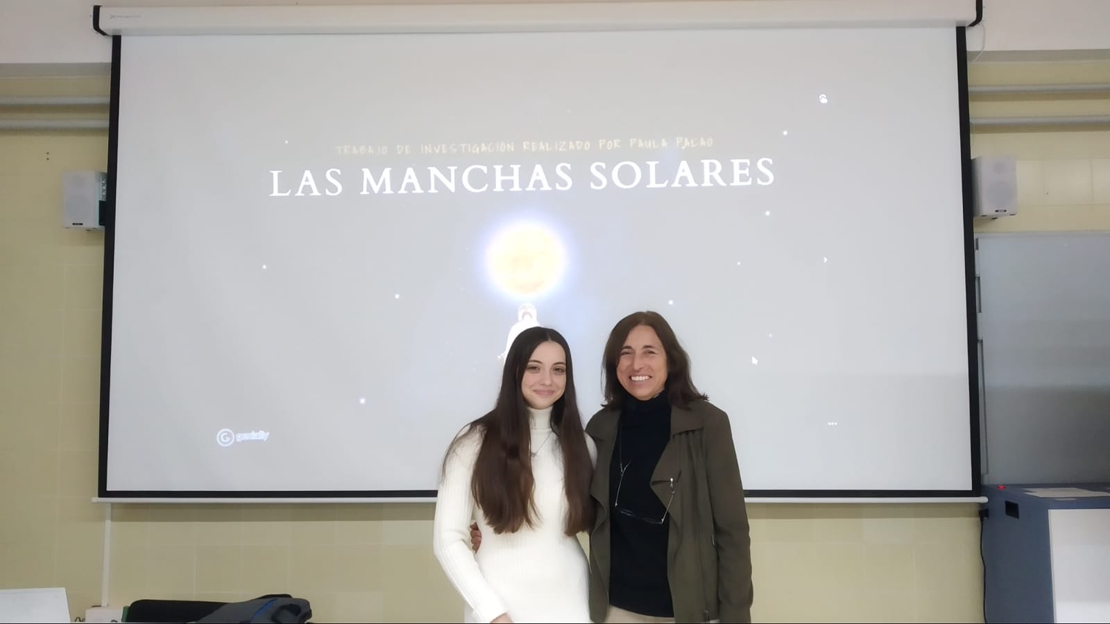 En el trabajo de investigación «LO QUE NOS ENSEÑAN LAS MANCHAS SOLARES. Cálculo de la rotación del Sol», Paula Palao consigue medir la velocidad de rotación del Sol utilizando manchas solares.